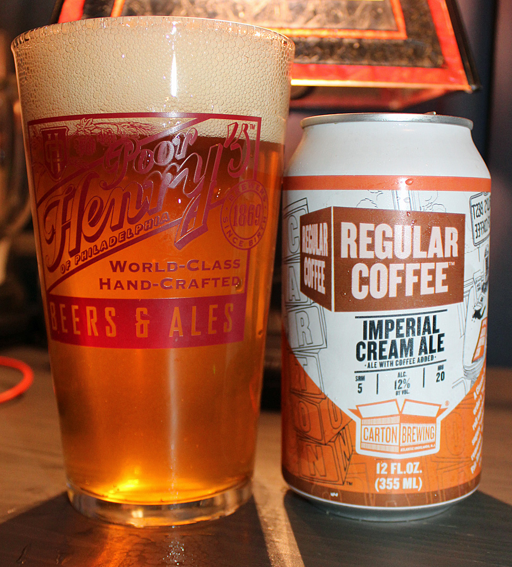 Carton Regular Coffee Imperial Cream Ale pours to a pale blonde color with a thick creamy head and a nose of coffee grinds freshly pulled from the pot. Taking a sip, the beer is medium to full in body, rich and potent as it flows over the tongue. The coffee grind notes the nose promised are here in full blossom, and the beer is creamy and smooth and warming with alcohol in the coffee bitter finish.