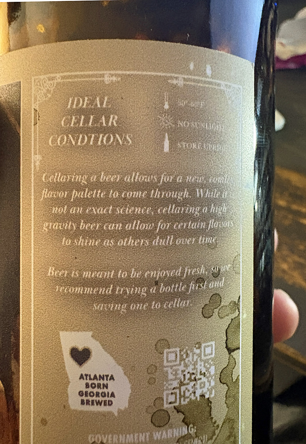 Anyway, my bottle of Fire Maker Aliferous Imperial Stout was brewed in 2022, so it already had a little bit of age on it when I bought it. Then I read this on the label: