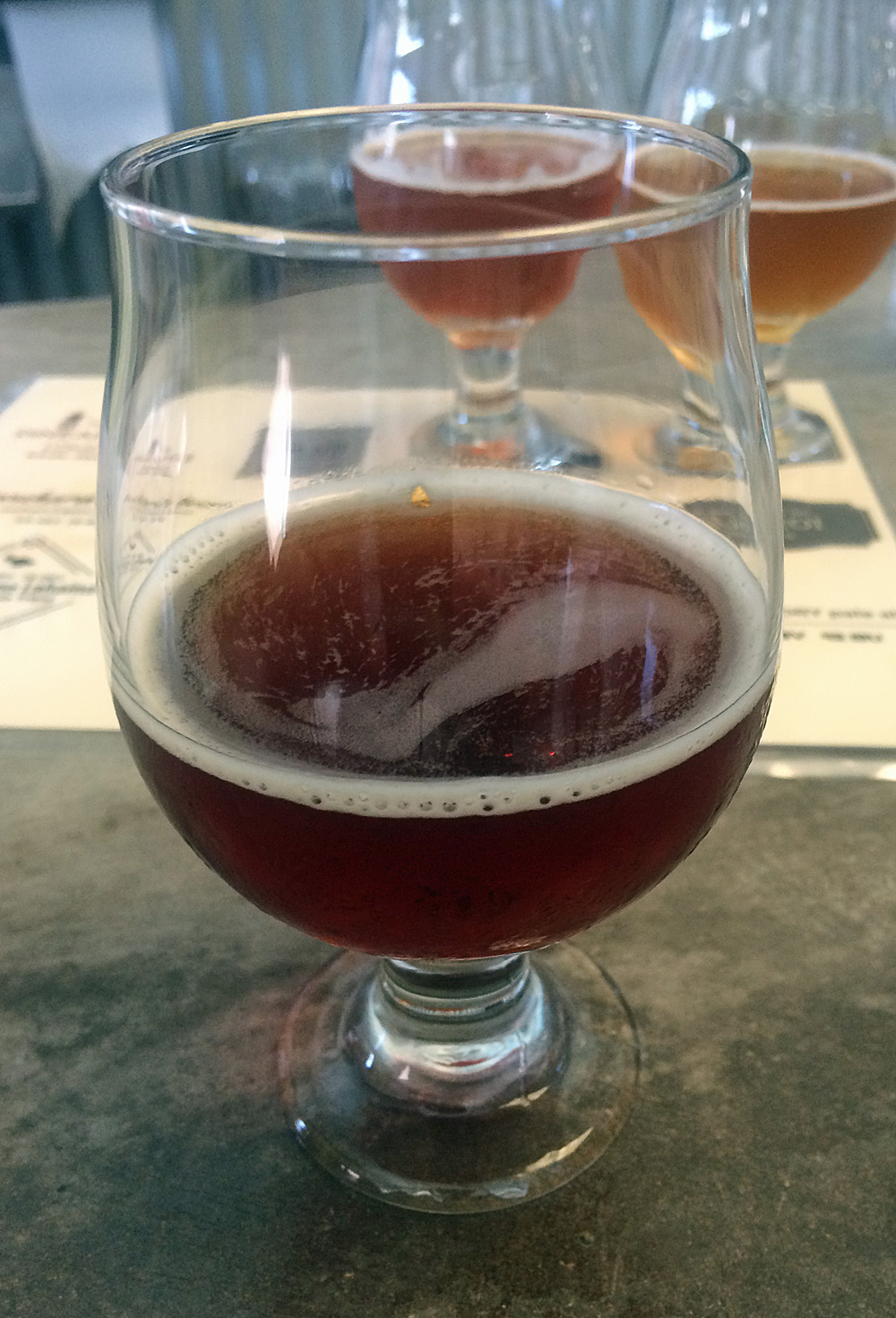 We arrived just before their noon opening time and were the first to belly up to the bar. I ordered a sampler and tried each of their beers before leaving. Four 4-ounce samples will run you $12, or you could try all 10 for $25. Pints run about $7-$8, and they fill growlers and crowlers, too.