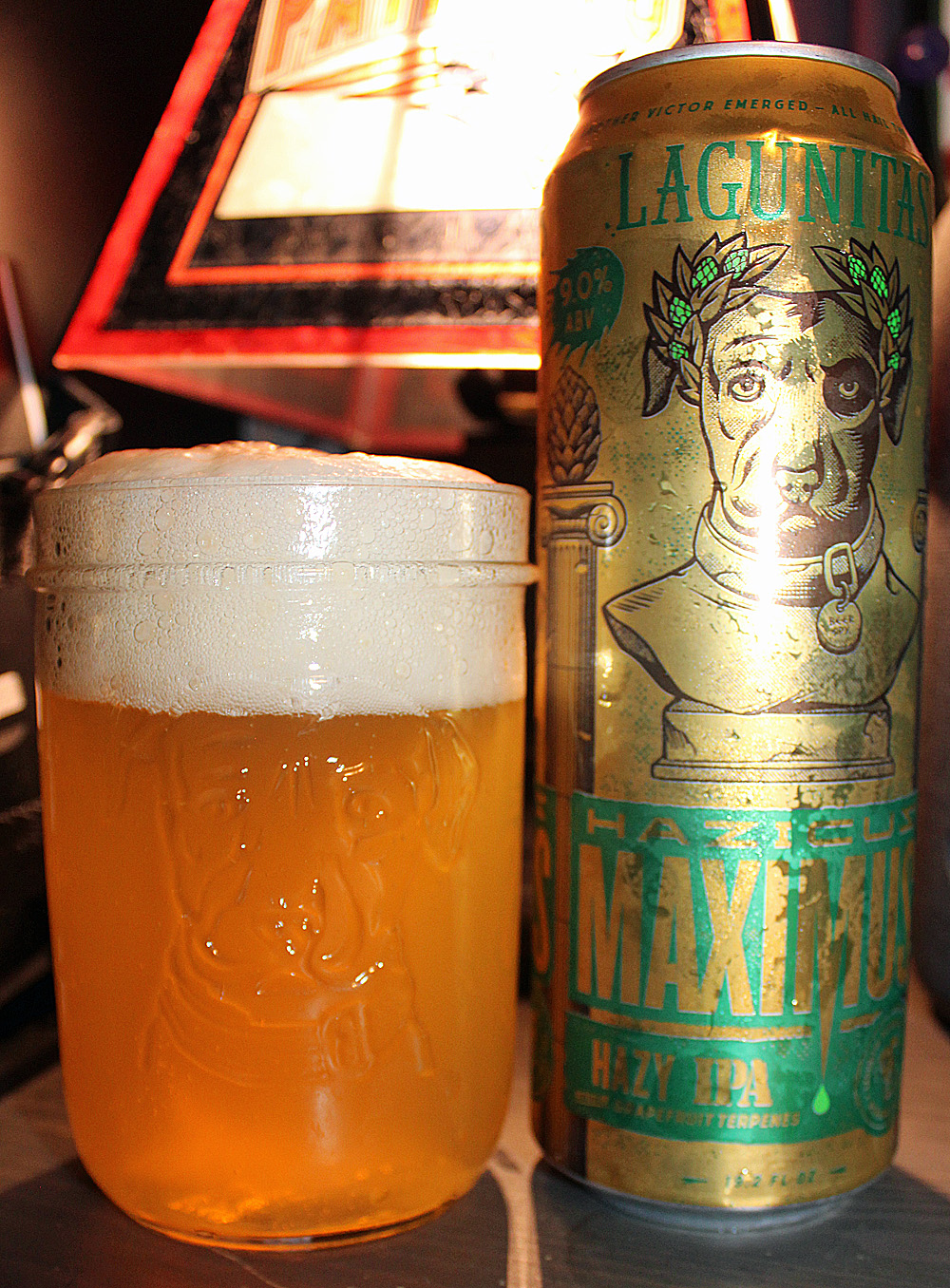 Now, you can add another beer to that list: Lagunitas Hazicus Maximus Hazy IPA, a hazy juicy version of Lagunitas classic Maximus Colossal IPA. My can says the beer has notes of grapefruit terpenes, and also says:
