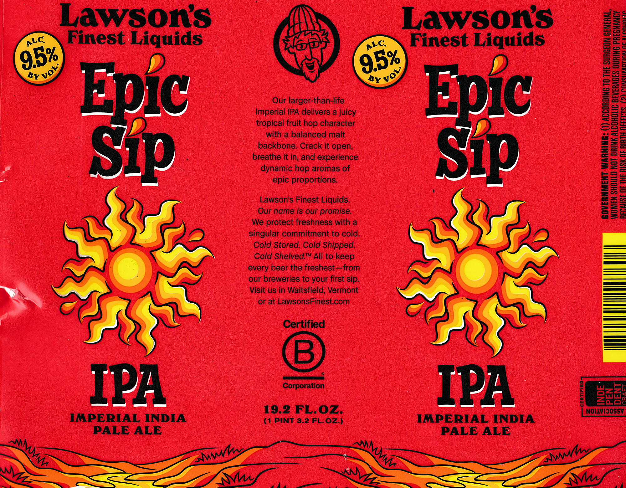 And the beer I am here to speak to today, Epic Sip Imperial India Pale Ale from Lawson’s Finest Liquids of Vermont. This was a big beer for the big game in more ways than one, it has a formidable alcohol content of 9.5% by volume, and it comes in a big can-19.2 ounces.