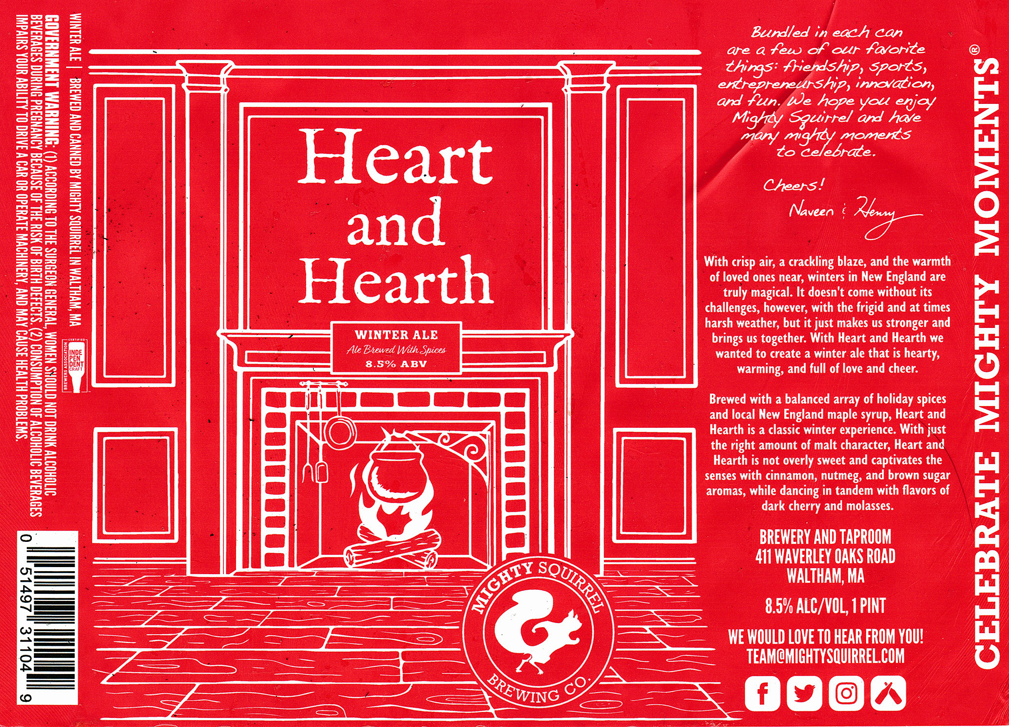 With crisp air, a crackling blaze, and the warmth of loved ones near, winters in New England are truly magical. It doesn't come without its challenges, however, with the frigid and at times harsh weather, but it just makes us stronger and brings us together. With Heart and Hearth, we wanted to create a winter ale that is hearty, warming, and full of love and cheer.