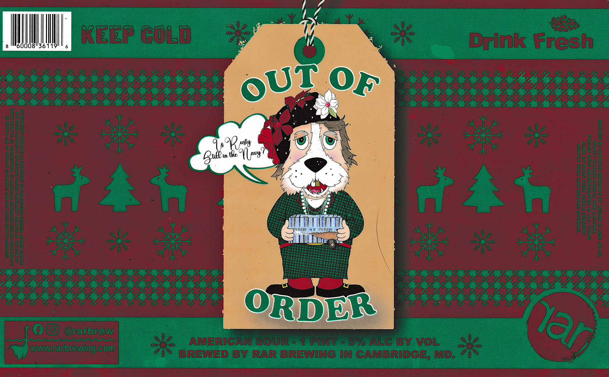 Is Rusty still in the navy? There’s a classic line for National Lampoon’s Christmas Vacation, uttered by a somewhat confused Aunt Bethany as she enters the Griswold home. This film is, of course, a holiday tradition chez bruguru, so when I saw that rar brewing company of Cambridge, Maryland recently released Is Rusty Still in the Navy American Sour, parts of their Out of Order series, I had to have a can. That is, after all, Aunt Bethany on the label, complete with her cat wrapped up as Christmas gift.