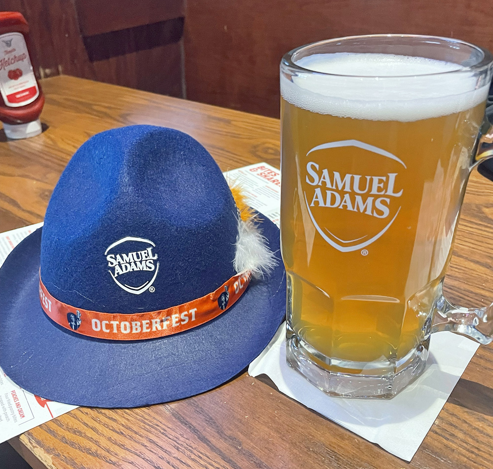 Update 9/11/2025: Samuel Adams beers are featured as beer of the month at Taco Mac! I got a full liter for just $9.99, less per ounce than the last time I had it on draft! It came with a tchotchke, a neat Samuel Adams Oktoberfest hat which my daughter Jess was happy to model for your viewing pleasure.