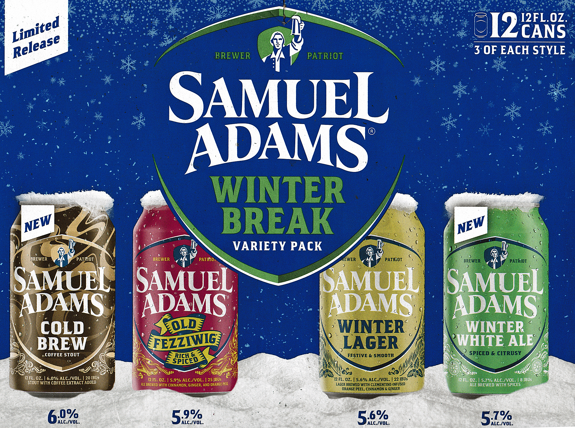Samuel Adams cites Cold Brew Coffee Stout and Winter White as new beers, although the latter seems to be pretty much the same as the Samuel Adams White Christmas included in prior winter 12-packs.