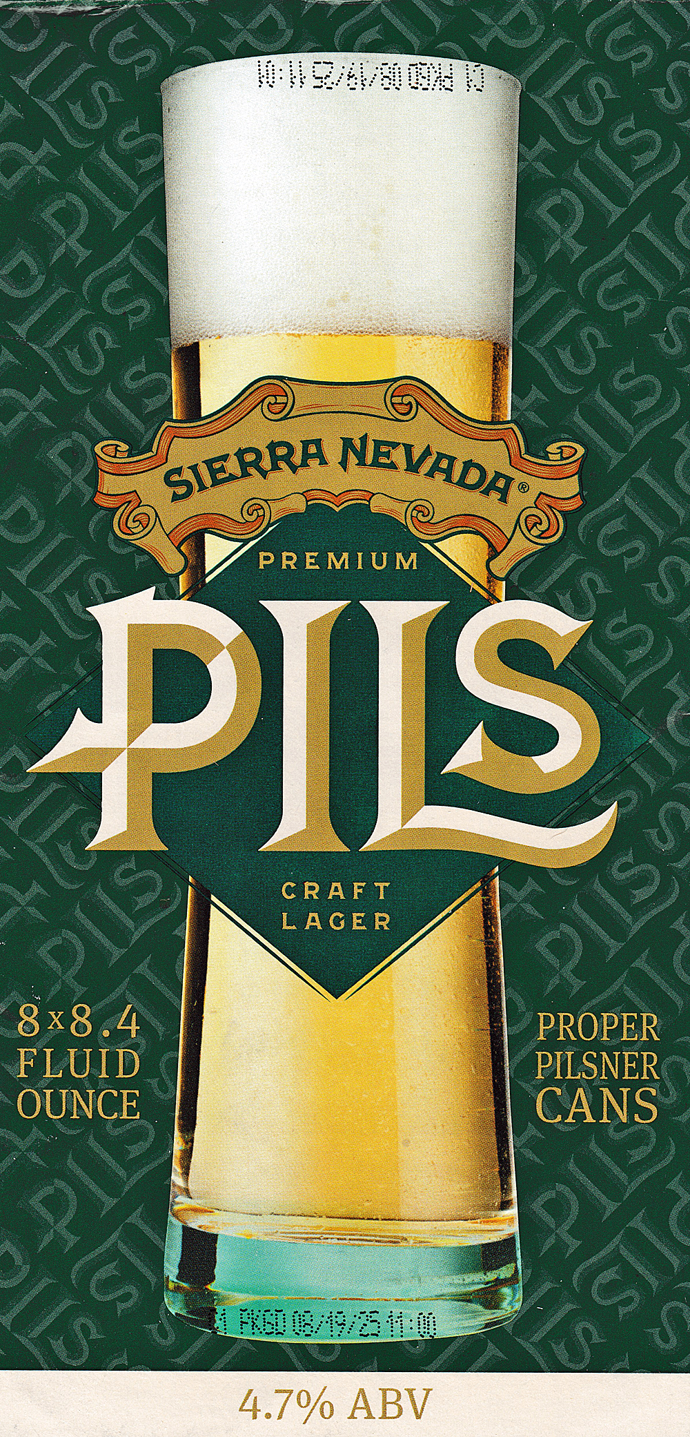 Sierra Nevada Pils has an alcohol content of 4.7% by volume with 25 IBUs. It is brewed with Saphir and Crystal Lupulin hops according to the brewery website. I paid $12.99 for my 8-pack, which seemed about a buck higher than it should have to me, especially since you are getting 67.2 ounces of beer instead of the usual 72 in a 6-pack of 12-ounce cans. My cans are stamped PKGD 081925 on the bottom.