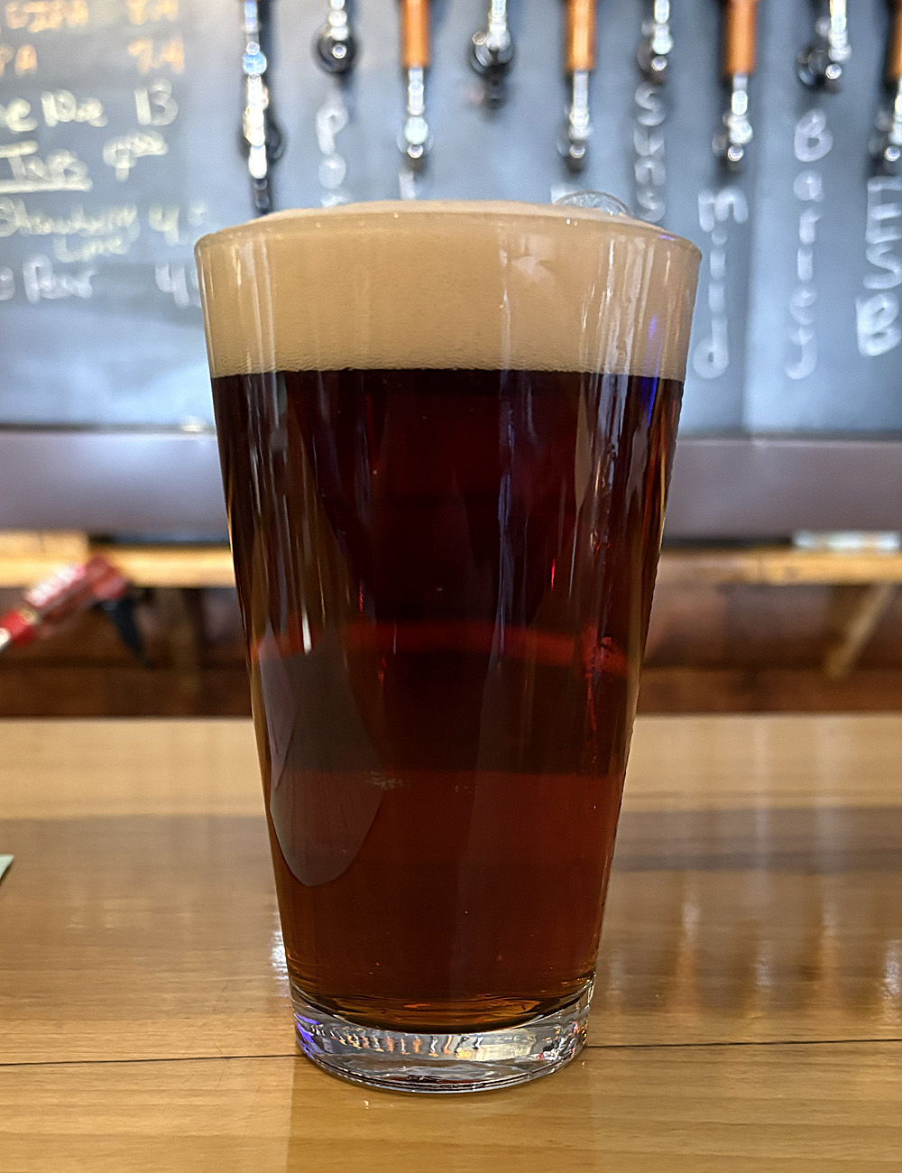 I enjoyed a sampler of four beers ($5) and a fifth sample that was on the house. First up was Dawn Mild, an English Mild, which like most of the beers was $4.50 a pint or $2.25 for a half pint. It was of proper strength for the style at 4% by volume. I liked that they don’t upcharge on the half pints. Even the samplers, at $5 for 4 times 4 ounces, are only 50 cents more than a pint. A 64-ounce growler fill of Dawn Mild is $14.95.