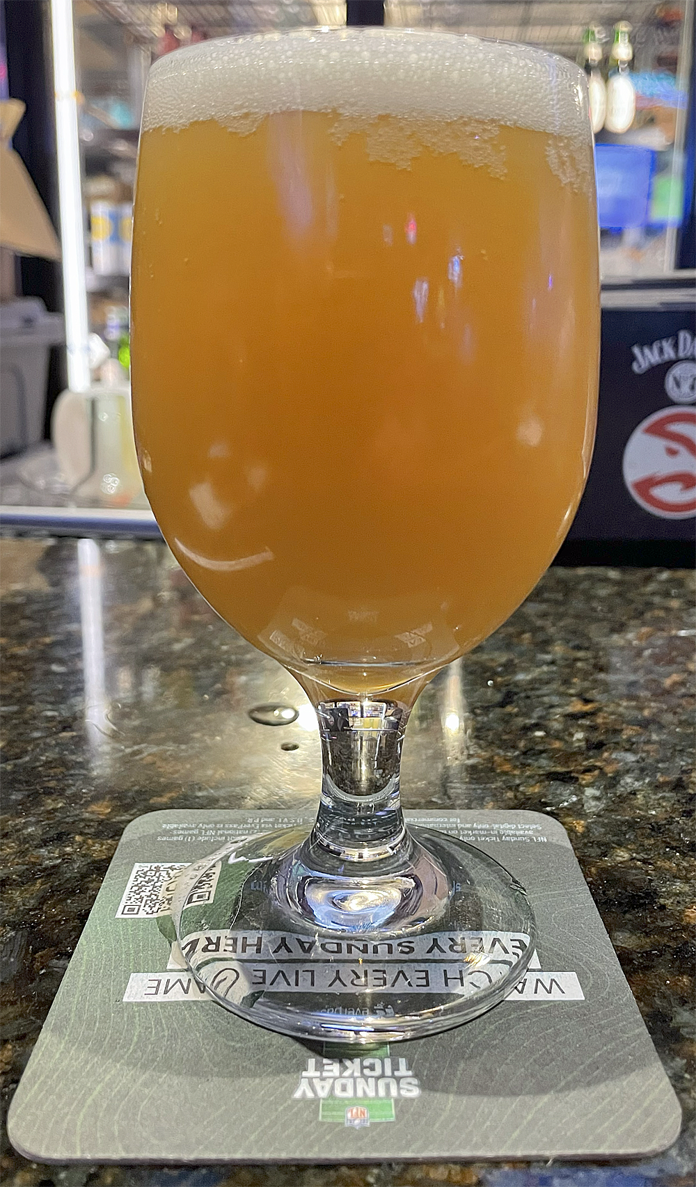 My glass of Weldwerks All Extra Shipper Everything Hazy Double India Pale Ale arrived a hazy murky orange color with a light head of foam and a vibrant nose of grapefruit, stone fruit and pineapple. Indeed, I could smell the beers heady aromas as my server set the glass before me. Taking a sip, it’s medium in body, juicy and tropical and absolutely bursting with fruity notes of guava, passion fruit, papaya, stone fruit peach, grapefruit pith and peel, raw carrot and pineapple. It finishes balanced with a gentle citrus rind and herbal bitterness.