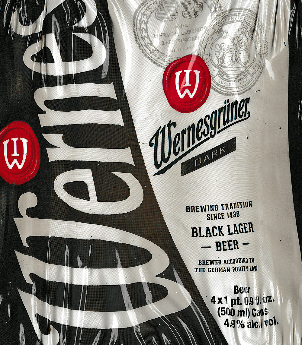 Wernesgrüner Dark has an alcohol content of 4.9% by volume and I paid $6.99 for four half liter cans at Aldi. They call this a black lager on the label, though it is not really a Schwarzbier in color or character. It’s more a Munich Dunkel. My cans are stamped 08.28.2026 on the bottom.