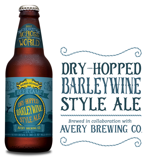 The fifth beer I popped from this sampler (I'm almost halfway through!) was Sierra Nevada Beer Camp Dry Hopped Barleywine Style Ale, brewed in conjunction with Colorado's Avery brewing. How exciting for these two barleywine behemoths to be making one together! I'll let them tell you more about it.