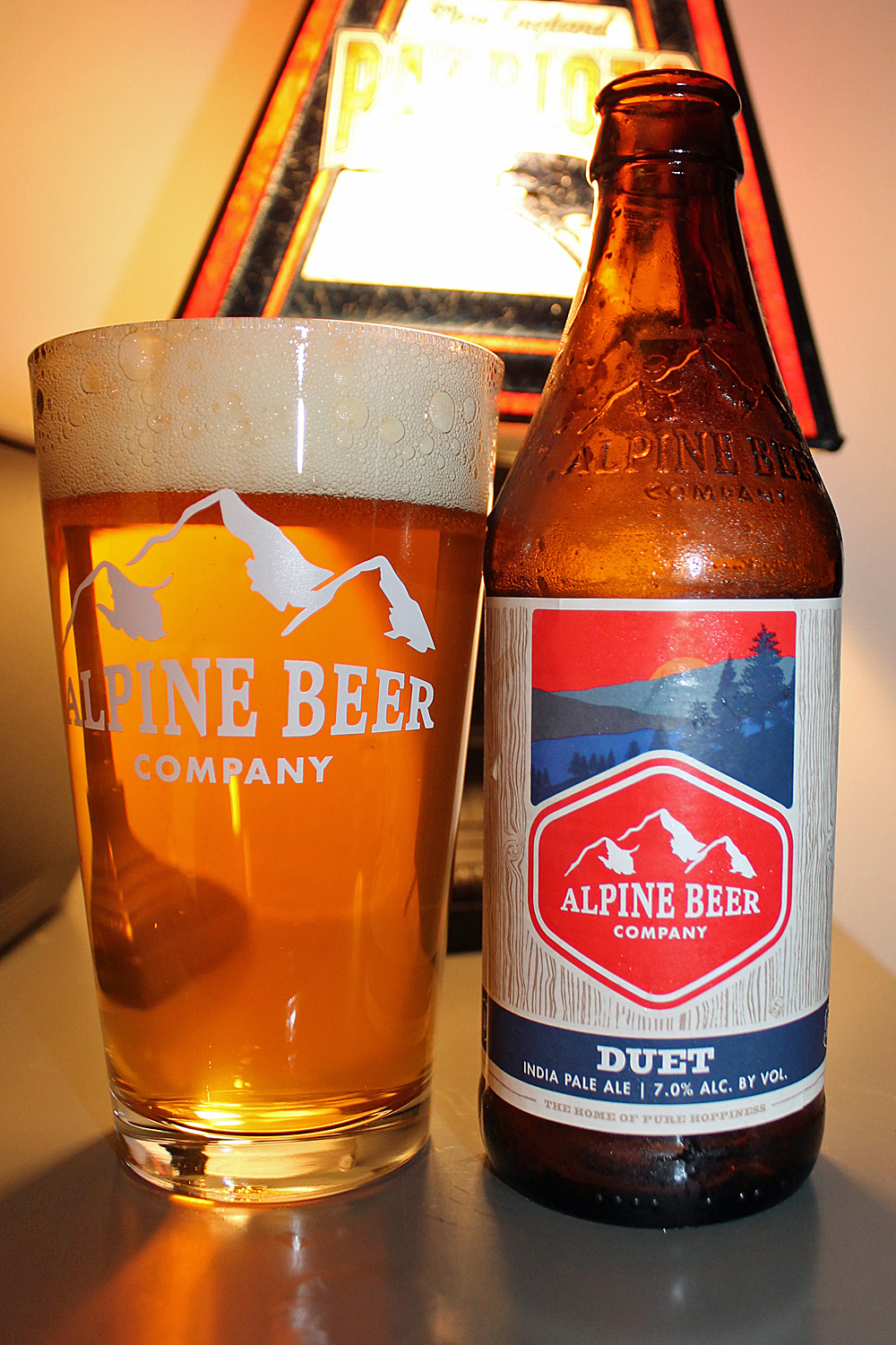 Here we go beer enthusiasts with yet another super-hyped (but is it overhyped?) India Pale Ale: Alpine Duet. This makes the third beer I’ve tried from Alpine, and they’ve all been delicious. My beef, however, is not with the quality of the beers from Alpine, it’s just that they’re ridiculously overpriced. Duet, despite all of the buildup, is the first beer I’ve tried from Alpine that isn’t outrageously priced, even if it is highly priced.