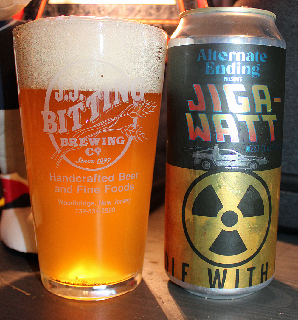 What the hell is a jigawatt? That’s what Michael J Fox wanted to know in the film “Back to the Future”, and it’s what I want to know, too. Good old Doc Brown was talking about a gigawatt, but called it a jigawatt in the movie, and now comes New Jersey’s Alternate Ending brewery with their Jigawatt West Coast Pale Ale to honor that cinematic moment.