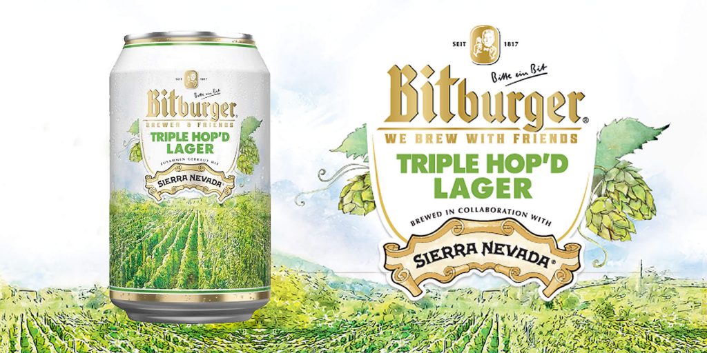 Our Bitburger & Sierra Nevada Triple Hop’d Lager is brewed from three hop varieties—Cascade from the Eifel region in Germany and Centennial and Chinook from the USA— to create a fruity hop taste that is in perfect balance with the beer’s slightly bitter flavor. Cascade from the Eifel region in Germany and Centennial and Chinook from the USA – and refined with the “Bitburger Siegelhopfen,” our own seal hops blend. Our collaboration brew is an exciting mix that combines a fruity hop taste with a balanced bitter-malty flavor.