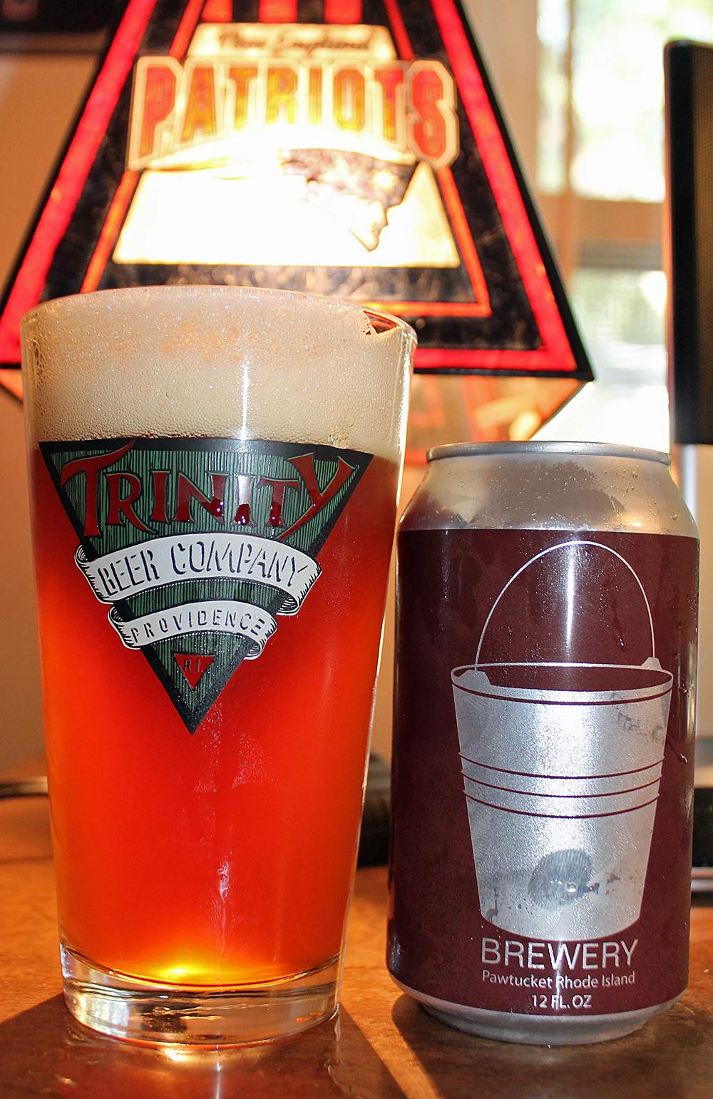 Bucket Brewery Pawtucket Pail Ale pours to a brilliant reddish amber color with a thick head formation of creamy foam and a soft fruity nose of citrus and apples. A thick layer of Brussels Lace forms on the sides of my glass and follows the liquid all the way to the bottom. Taking a sip, I get a firm caramel maltiness just right for the style with more of the citrus fruit that the nose promised along with hints of ripe red apples and an impressively bitter, quite herbal grassy aromatic hop finish.