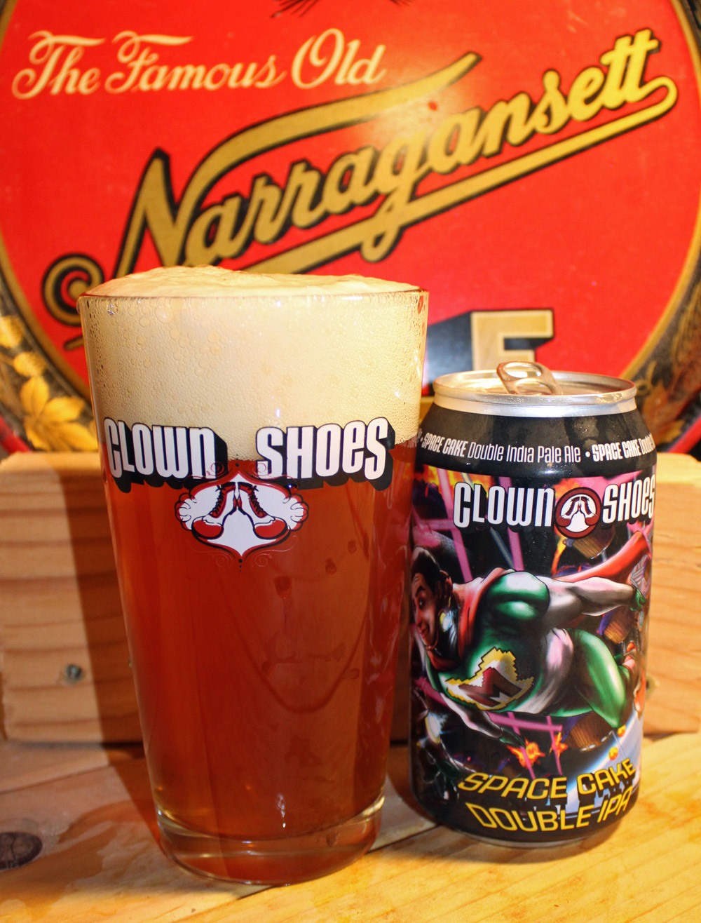 Clown Shoes Space Cake Double IPA pours to a bright orange color and thick fluffy head with a strong note of citrus grapefruit that wafted to my nose from a distance as I poured. Taking a sip, the beer has a medium to slightly more than medium caramel maltiness with tropical pineapple and citrus grapefruit flesh and rind. Finishes with a respectable bitterness and gentle alcohol warmth but does not seem as strong as its 9% ABV.