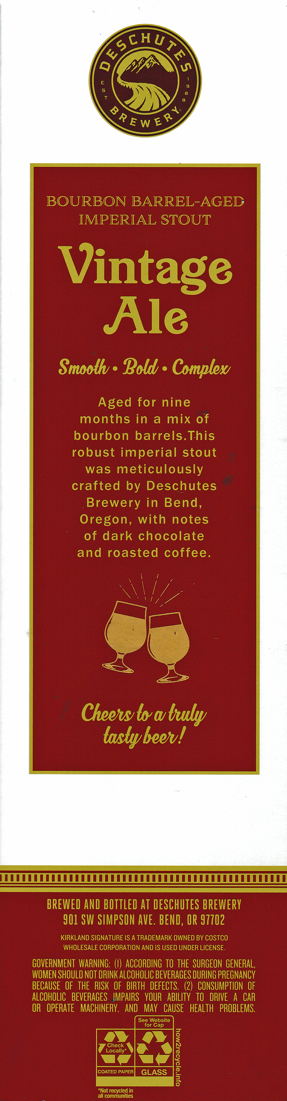 This was, of course, Kirkland Vintage Ale 2025, and it is as the label indicates a Bourbon Barrel-Aged Imperial Stout. It is brewed by Deschutes Brewing of Bend, Oregon, and you really can’t go wrong as a beer if you are brewed by Deschutes. They also brew the excellent Kirkland Lager for Costco.