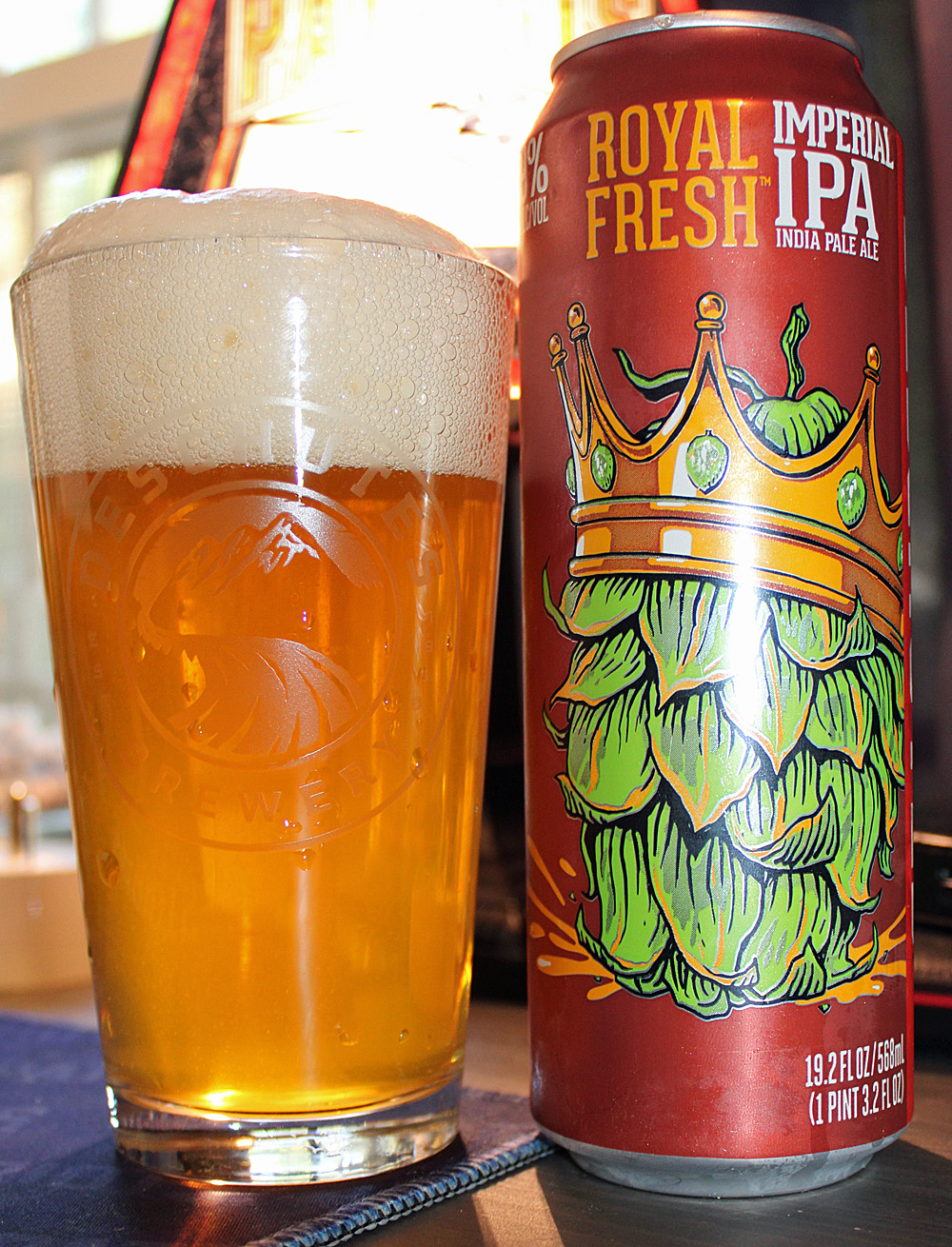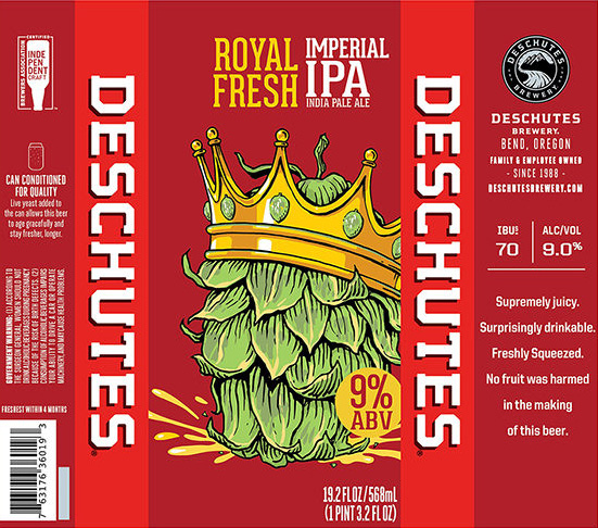Deschutes Royal Fresh Imperial IPA has an alcohol content of 9% by volume with 70 IBUs. It runs $12.99 a six-pack at Total Wine and I paid $3.99 for a 19.2 ounce can at Canton Wine & Spirits Warehouse.