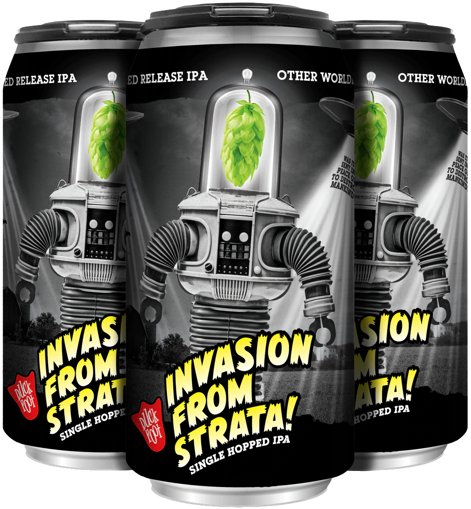 Dank-ger Will Robinson!!!! That’s what I said when I took my first sip of Invasion From Strata! Single Hopped IPA from the Duck Foot brewery of San Diego, California. This is my third beer from Duck Foot, with two being rather good and one being a drain pour. Here’s what the brewery says about Invasion From Strata! On their website: