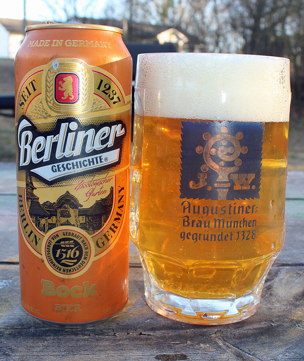Outside beer! Yay! I was having my first outside beer of the year and it was only March 5th. Rummaging through my hallway DBR (Dedicated Beer Refrigerator) I found a can of Berliner Geschichte Bock that I bought in Helen the previous October. This is brewed by Eibauer brewery and I thought it was their Eibauer Dunkler Bock under another label. It is not; Berliner Geschichte Bock is a Maibock.