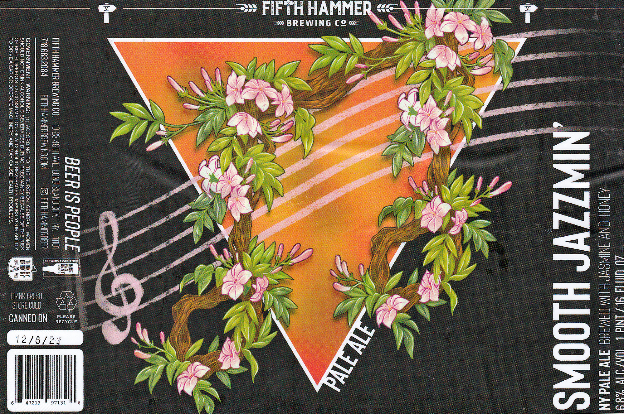 Fifth Hammer Smooth Jazzmin’ has an alcohol content of 6.8% by volume and I paid $6.99 for my pint can from Half Time. I have no other pricing information. The label of my can says it was Canned On 12/8/23. I bought it on June 23 of 2024 and drank it on November 10th, making it almost a year old. It held up quite well and I enjoyed it very much.