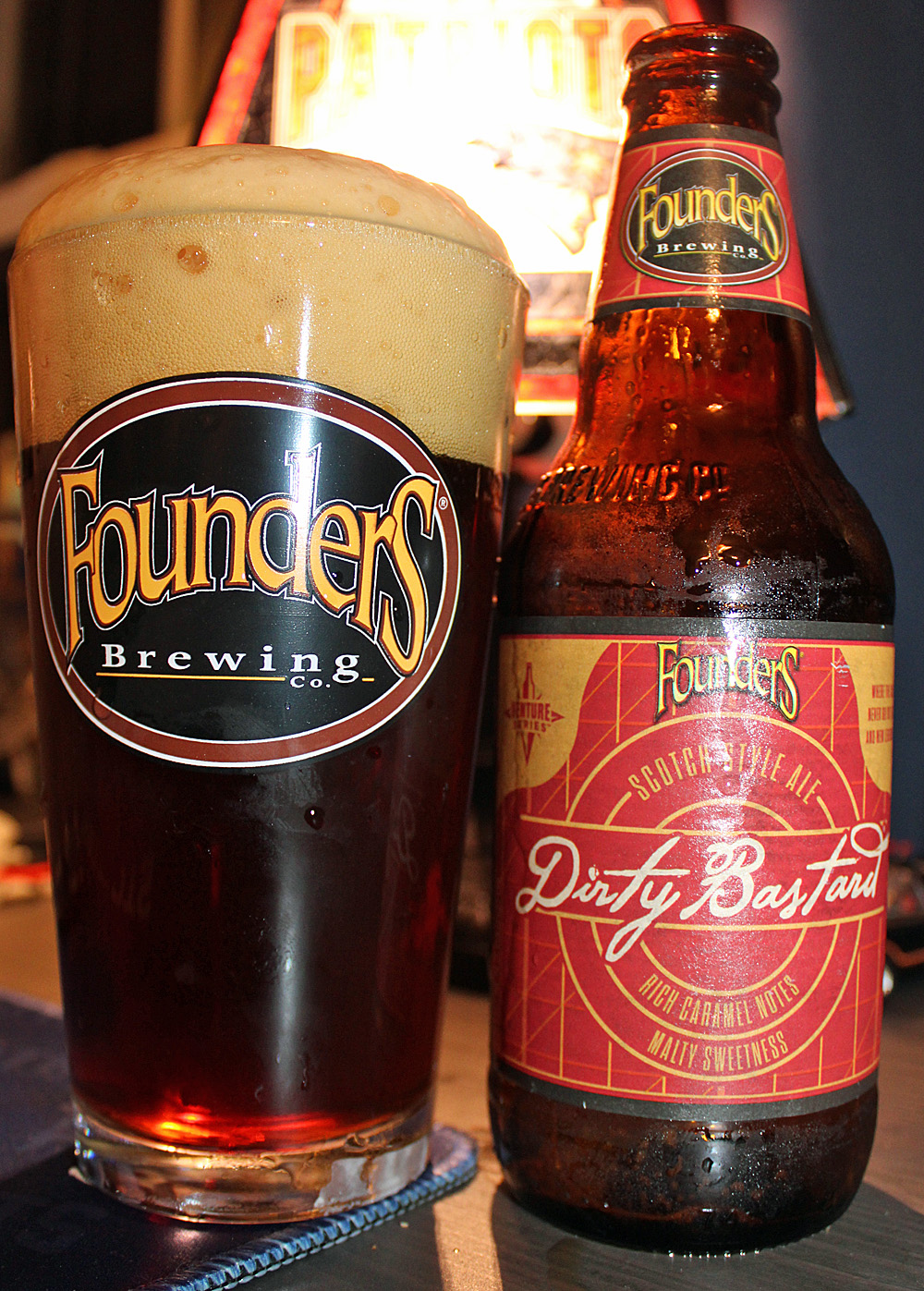 Well folks, here we are again with another episode of “How have I never reviewed this beer?”. That’s right, and this time the beer in question is Founders Dirty Bastard Scotch Style Ale, and the fact that I have never posted here about it is all the more perplexing since it may well be my favorite Founders beer of all. Which is really saying something.