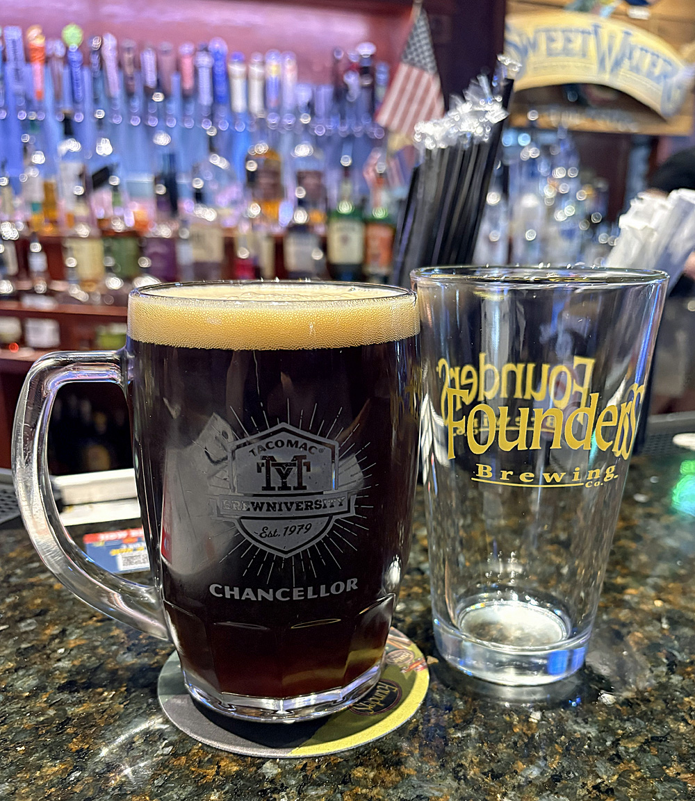 I love malty beers, you see, and Founders Dirty Bastard is a malty beer indeed. I bought a six-pack of this delightful Scotch Ale/Wee Heavy in April of 2024 and drank a bottle right away but did not take any tasting notes because, well, I was sure I had already done that. I still hadn’t done this as of February of 2026, almost two years later, at least I cannot find them if I did. Taco mac to the rescue! They are featuring Founders beers as beer of the month this month, and one of them is Dirty Bastard. I made a beeline there for the first Thursday to enjoy this beer and get a tchotchke.