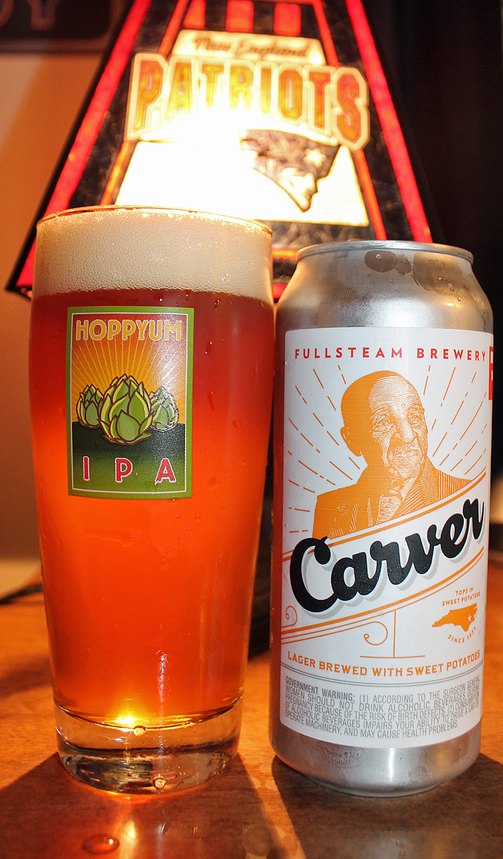 Fullsteam Carver Lager Brewed with Sweet Potatoes has an alcohol content of 5.3% by volume and I paid $11.99 for a 4-pack of 16-ounce cans.
