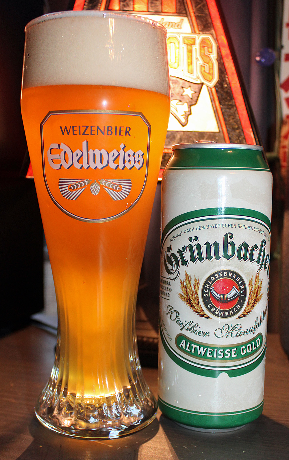 Grünbacher Altweisse Gold pours to a cloudy yellow orange color with a thick fluffy white head and a nose of rich banana and clove. I roused the yeast and poured this into my glass, as I always do with this style. Taking a sip, the beer is light to medium in body, just a tad lighter than I expect, but only a tad. It does have the crackery wheat I am looking for, and quickly explodes with flavor: clove, banana, a hint of bubble gum. It’s a tad peppery and finishes tart wheaty and oh so refreshing. I would definitely buy this beer again.