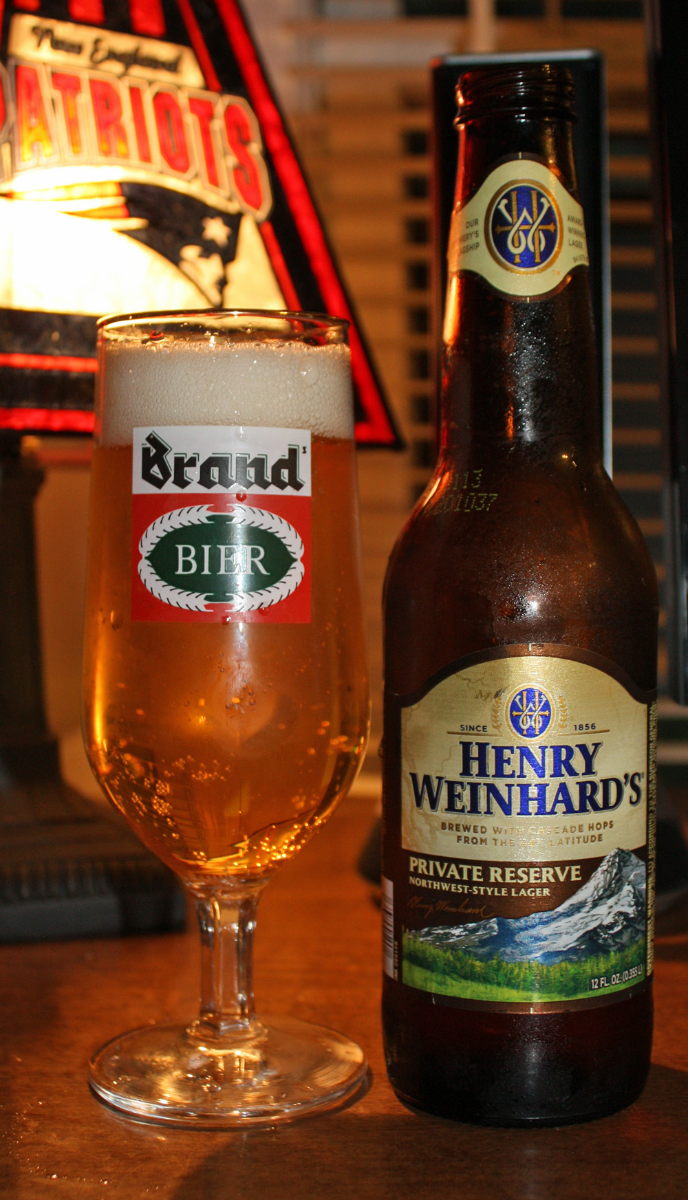 Henry Weinhard’s Private Reserve Northwest Style Lager pours to a brilliant golden color with a moderate head formation of tightly packed bubbles and a gently hoppy-malty nose. Taking a sip, the beer has a smooth clean maltiness up front free of adjuncts and packed with biscuit malt. The finish is nicely balanced by a gentle piney hoppy dryness and a slight tartness that is very quenching. All in all, a tasty American lager that’s crisp, clean and drinkable. The cascade hops add a unique flavor for a lager, too. Not a bad beer for the price, and certainly one I would by again from time to time.