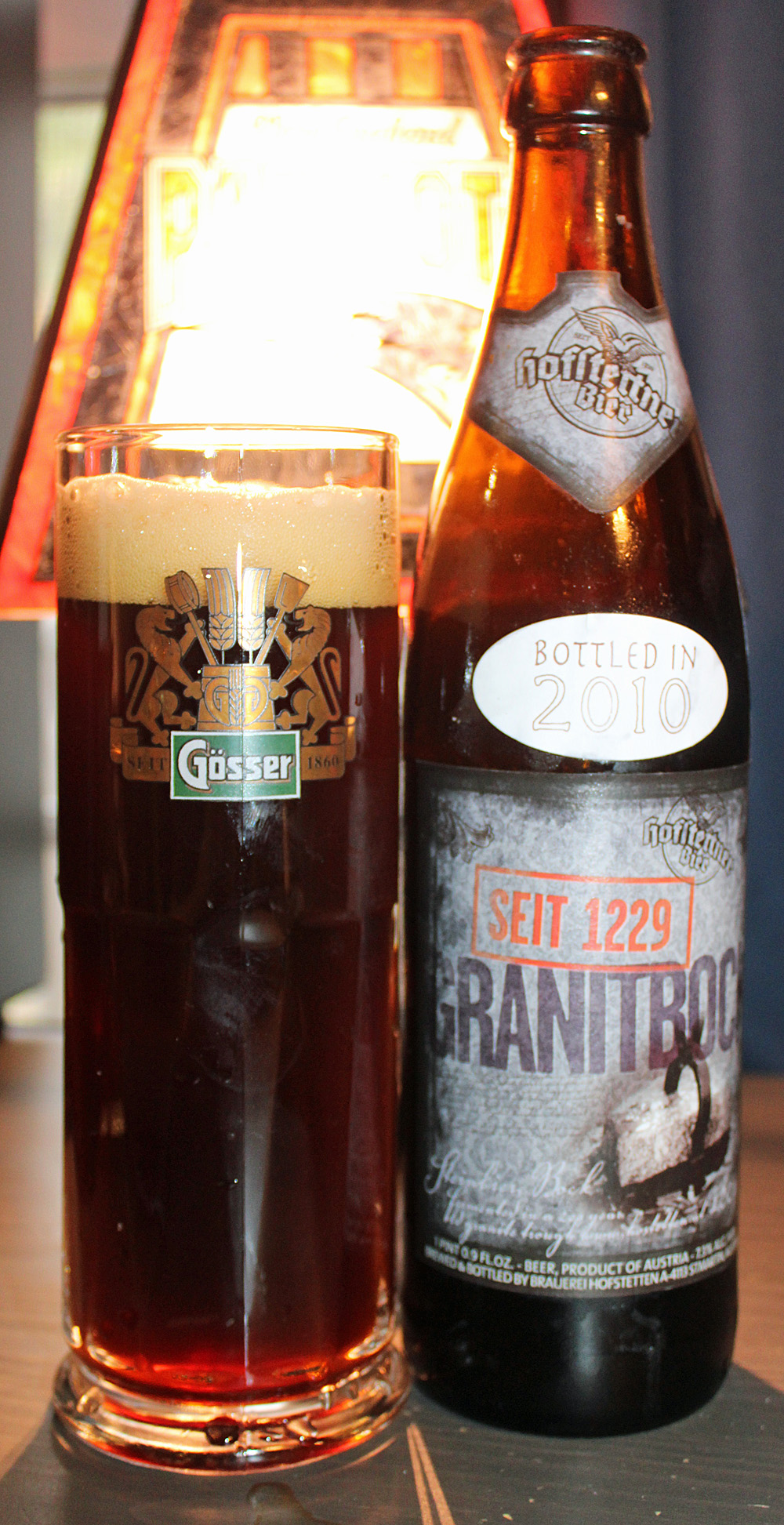 Hofstettner Granitbock has an alcohol content of 7.3% by volume and I paid $6.99 for my half liter bottle at Betty’s. Not bad for a beer aged 15 years for you. My bottle says it was both brewed and bottled in 2010.