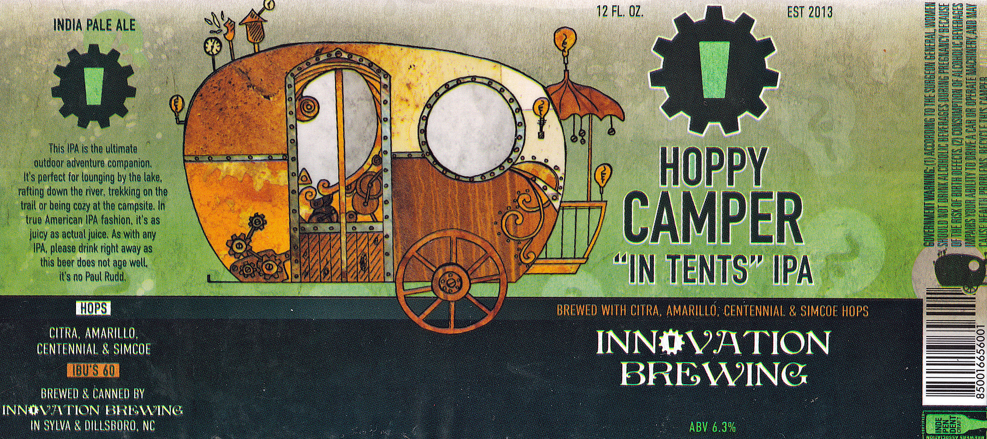 All the more reason for those of us spared to be thankful. My only casualty was a good night’s sleep, but tired as I was the Friday of the 27th, I decided to have a few beers. I wanted one from western North Carolina in solidarity, and reached for a can of Innovation Hoppy Camper In Tents IPA.