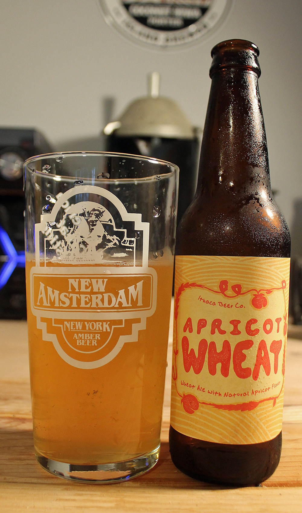 Ithaca Beer Company Apricot Wheat pours to a pale blonde yellow color with a very, very light head formation and a robust apricot dried-fruit nose. Taking a sip, the beer has a firm body, with malt and crackery wheat at the base and a soft butteriness. The apricot fruit quickly takes over, robust and juicy, and yet it never cloys as the beer finishes balanced with a bit of hops and crackery wheat.