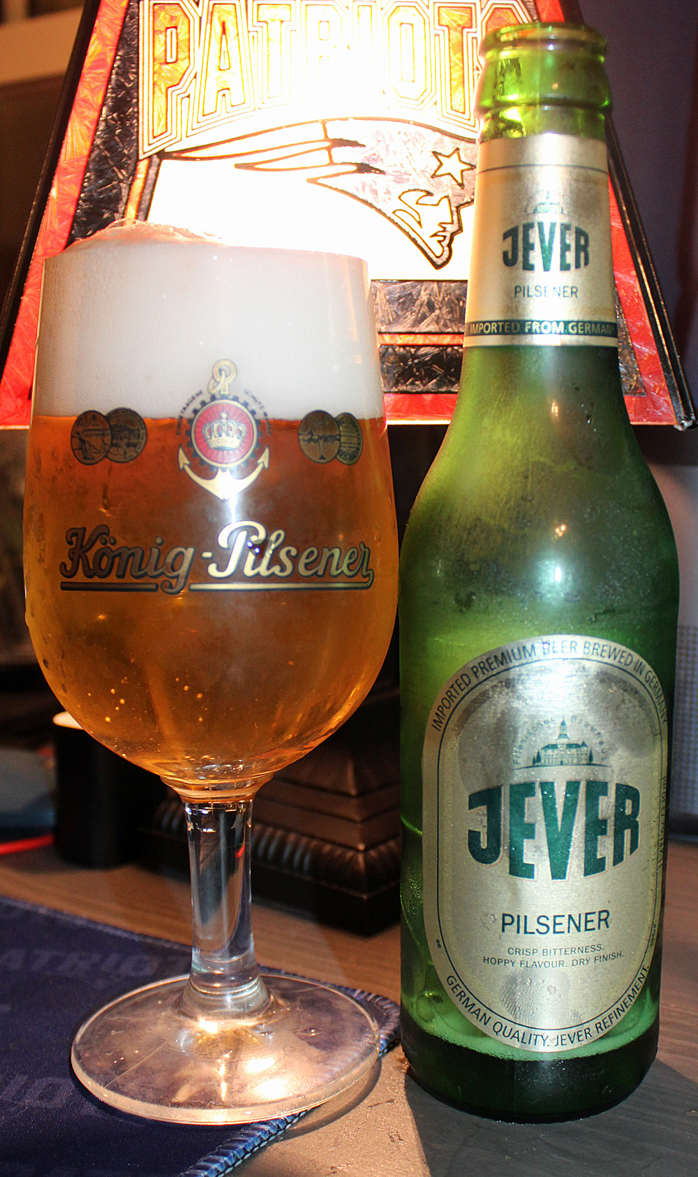 Update 5/24/2015: At the risk of being accused of waffling, I'm about to change my rating of Jever again. I think I might have been a bit too harsh on the beer the last time I had it, so I'm giving back a half star after reflection over a 32-ounce growler (just $8.75) of Jever Pils from Stout's Growlers here in Canton. The beer is wonderfully balanced with beautiful grassy herbal German hop aroma and crisp biscuity pilsner malt. I just love the gentle lingering grassy hop bitterness in the finish. Not quite the beer it once was but still a very delicious pilsner with enough fresh bready malt and herbal hops going on to satisfy the discriminating beer enthusiast. It was the perfect beer for sipping on a warm Memorial Day weekend afternoon spent slow barbecuing ribs. It proved a heavenly match for them when they were done, too.