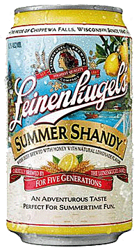 Shandy is, traditionally, a mixture of lager and lemonade or lemon soda. It’s meant to be tart and refreshing, quaffable, and moderate in alcohol. I prefer to mix my own, but there are some bottled and canned shandies you can buy premixed. Leinenkugel Summer Shandy is one of them.