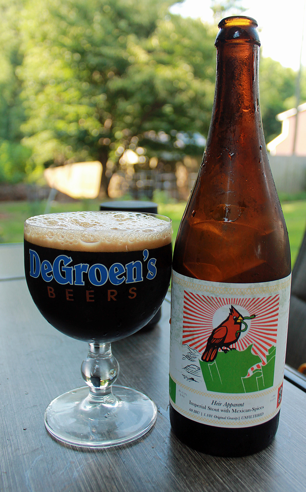 Interestingly, I got to try another Mexican-spiced Imperial Stout about a month later, Westbrook Mexican Cake. The two beers are quite similar, both imperial stouts obviously and each spiced with Mexican peppers, vanilla, and cocoa nibs (Mexican Cake also incorporates cinnamon). The beers are similar in strength and bitterness at 10.5% and 50 IBUs for the Mexican Cake and 11.5% and 60 IBUs for the Heir Apparent. Jess wasn’t there when I bought the Mexican Cake to tell me not to age it, but it does say that on the label.