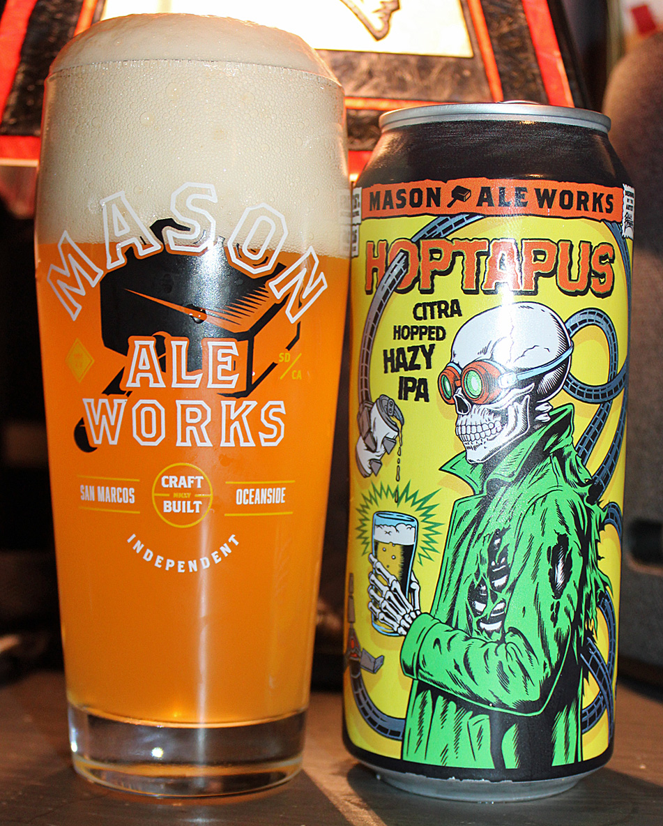 One thing is for sure about Mason Ale Works of San Diego, California: they have some of the coolest label art in the business. Their labels generally honor, imitate, or lampoon a celebrated character in pop culture. Case in point: Hoptapus Citra Hopped Hazy IPA.