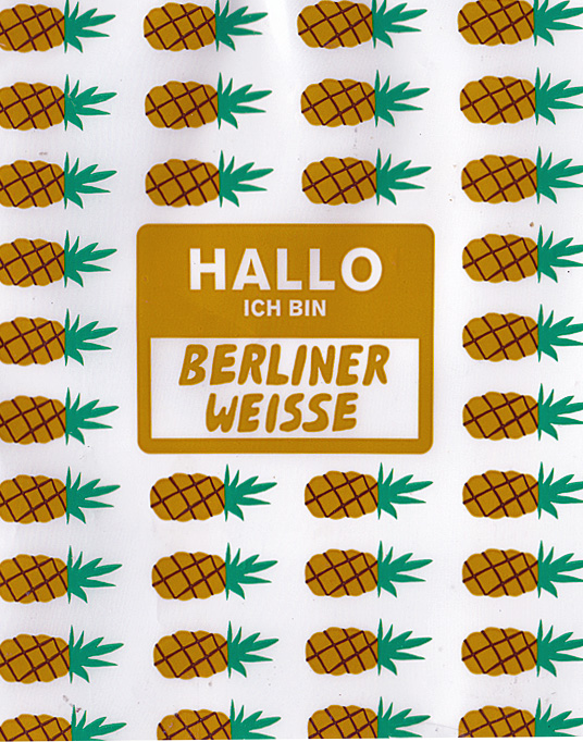 Hallo Ich Bin Berliner Weisse Pineapple pours to a pale golden color with a light head of foam and a very sour vinegaresque nose barely hinting at the pineapple fruit. Taking a sip, the beer is wonderfully tart and refreshing, puckeringly sour as Berliner Weisse should be. I barely get the pineapple fruit, and that’s with a lot of reflection to find it. As a Berliner Weisse, I like this; as a pineapple Berliner Weisse less so.