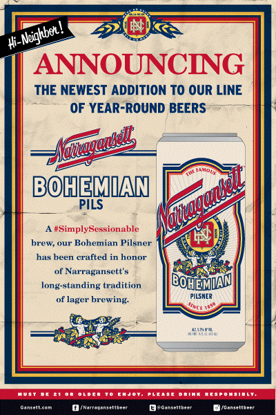 Before I tell my story, a little background on the beer: Narragansett Bohemian Pilsner is a recent addition to the brewery’s lineup. It’s the baby of brewer Sean Larkin, he of Trinity Brewhouse fame, and I’ve shared a beer with Sean in the past in my capacity as columnist for the Yankee Brew News. I can tell you he’s a great guy; a sip of Narragansett Bohemian Pilsner will tell you he’s a great brewer.