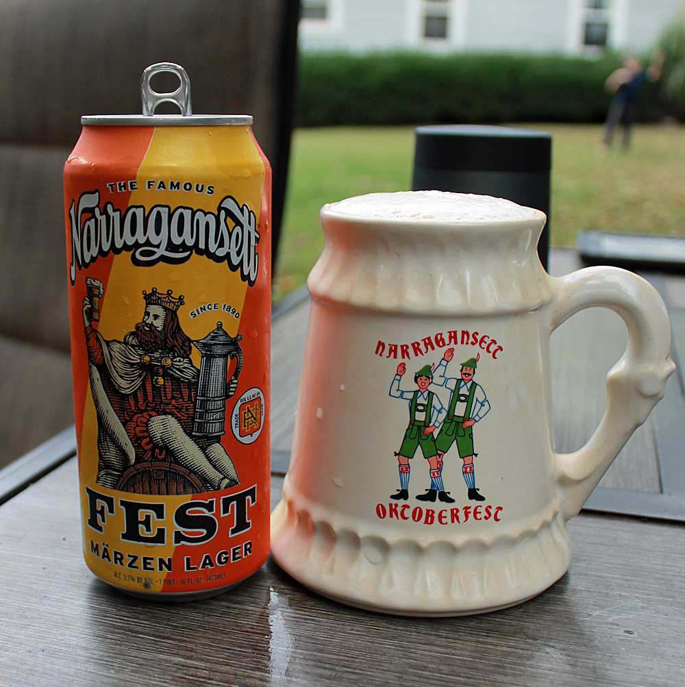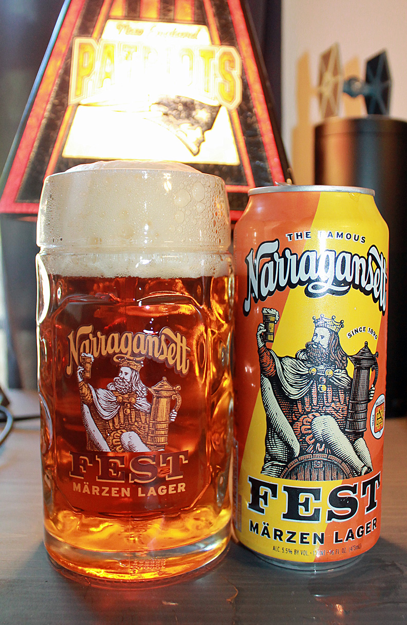 For an old time beer drinker like me, nothing says Rhode Island like Narragansett beer. Narragansett began operations in 1890 in Cranston, Rhode Island. They didn’t quite make it a century, closing their doors (sadly) in 1981. The brand continued, brewed by Falstaff in Fort Wayne, Indiana, but the local connection was gone and loyal drinkers claimed it just wasn’t the same. I was 17 in 1981, and just beginning to enjoy beer, so missed actually experiencing the beers from the old brewery. More or less. My dad told me when I was about two or three he would give me a sip of Gansett, and apparently I liked it so much I came back for more. A second sip was not allowed, as my dad recounted, he told me I would get drunk. “Get frunk?” I replied, and sped off on my way to do whatever it is that two year olds do. Never fear! Narragansett is, in a way, the zombie of beers, and it came back from the dead in 2005, revived with new ownership but using original recipes. Ironically, the beer’s local roots were touted at the same time as the beer was brewed in New York at Genesee. Still, Narragansett was clear the goal was to brew beer in Rhode Island again, and in 2017 the first Narragansett brewery since 1981 was opened in Pawtucket. Great place, Pawtucket. I was born there myself. Narragansett beer is widely distributed once again, though most of it is still brewed in Rochester. One of the beers brewed there is Narragansett Fest Marzen Lager, which has somehow ever eluded me. Since last year, Narragansett has been sold in Georgia, though we usually only see a few varieties. When I saw on the Total Wine website that they had the Fest in stock, I skeedaddled down to the one location that had it in Atlanta. Good thing I did, as I scored one of the last two six-packs they had. Narragansett says on the can label: What better way to celebrate Oktoberfest than with a classic, German-style Marzen? Narragansett Fest blends a rich malt profile with a subtly crisp hoppiness for a taste that even Gambrinus, the Patron Saint of Beer, would find refreshing. So we offer this beer as a tribute to him, which is fitting, as his statue toasted all arriving visitors and workers outside our original Cranston, RI brewery for decades. Narragansett also says on their website that the beer is made with Weyermann Munich malt and Tettnang hops. It has an alcohol content of 5.5% by volume with 22 IBUs and I paid $10.99 for a six-pack of kinger cans at Total Wine. Narragansett Fest Marzen Lager pours to a beautiful bright amber orange color with a thick fluffy head and an inviting soft malty nose. Taking a sip, the beer is delightful with toasty nutty malt up front and a bit of caramel. None of that overpowers, but none of it is lacking, either. Bitter oranges come to mind, and grassy herbal hops in the finish. It's not as good as a good German example (but then what Oktoberfest Marzen is), and I have had better domestics, but this is wonderfully flavorful and drinkable. 3 ½ stars with added bonus for the price and nostalgia.