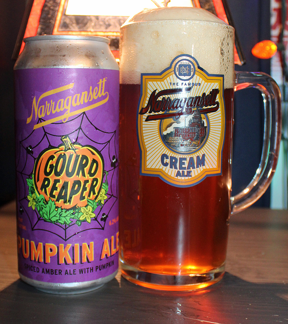 It was exactly one week ago that I was putting my review of that fine Rogue IPA together, a brisk Saturday morning here in Vanton, Georgia. I could not remember for the life of me where I had bought the beer and how much I had paid for it. So, I checked out Half Time Beverage to see if I had bought it there (I had not, I bought it at Total Wine), and while I was there I searched for Narragansett to see what beers were available. They ahd the Gourd Reaper! So, $125 for a case of 24 assorted beers later, it was on its way to me, I got the box on Wednesday, drank the beer Thursday, and here we are today.