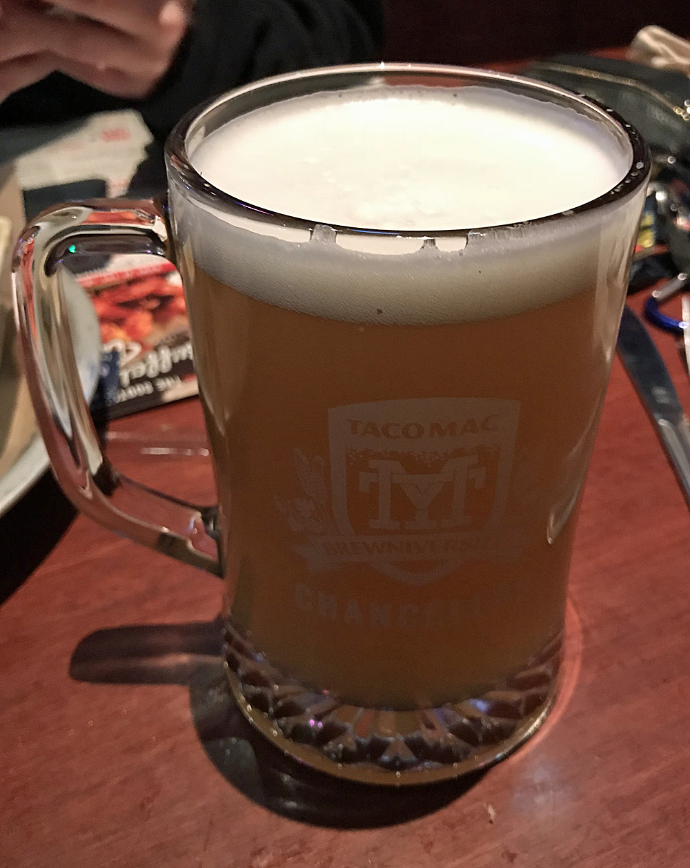 A new Fat Tire beer! Fat Tire Amber is the classic New Belgium so many love, and so many beer geeks love to hate. Not me though, I’ve always enjoyed its smooth malty character myself. Regardless, there have been a few variations and iterations on that brew over the years, including a 12-pack sampler with various collaboration beers under the Fat Tire and Friends name. I never tried any of those, but I did order a mug of Fat Tire Belgian White at Taco Mac.