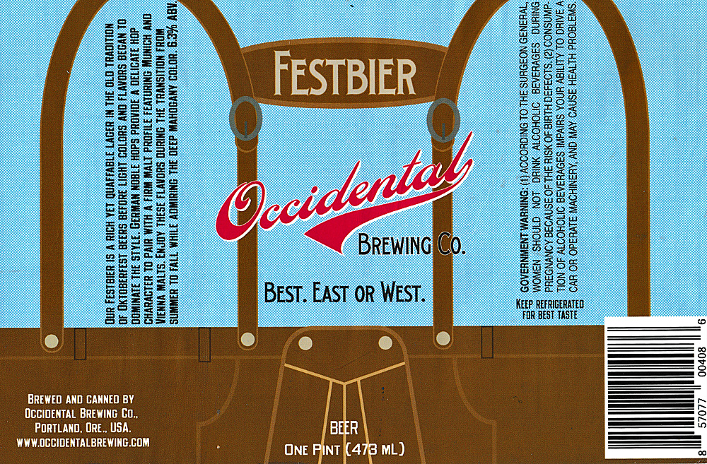 A smash hit at Occidental’s Oktoberfest, this year’s Festbier is a rich yet quaffable lager in the old tradition of Oktoberfest beers before light colors and flavors began to dominate the style. German noble hops provide a delicate hop character to pair with a firm malt profile featuring Munich and Vienna malts. Portland-area beer drinkers can enjoy these flavors during the transition from summer to fall while admiring the beer’s beautiful, deep mahogany color.