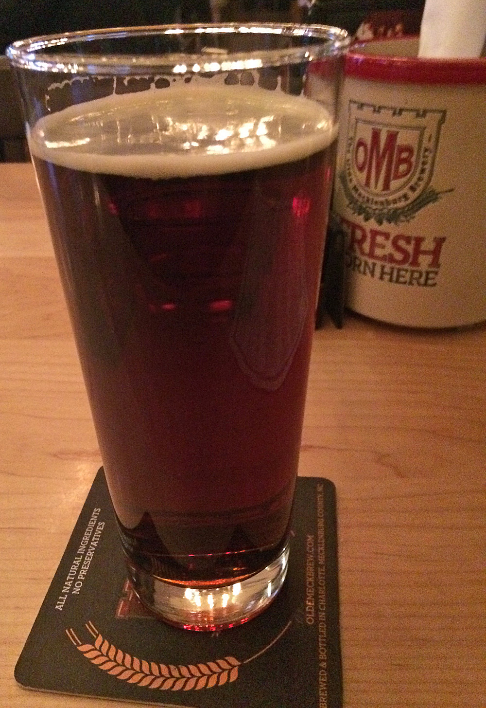 Here’s a brewery with a really neat story behind it: Olde Mecklenburg Brewery and Restaurant in Charlotte, North Carolina. This past weekend found me working in Fort Mill, South Carolina, about 10 miles away from OMB as they abbreviate it, but my hotel was a scant .9 miles from the brewery itself-walking distance for sure. How did that happen? I’ll never tell.