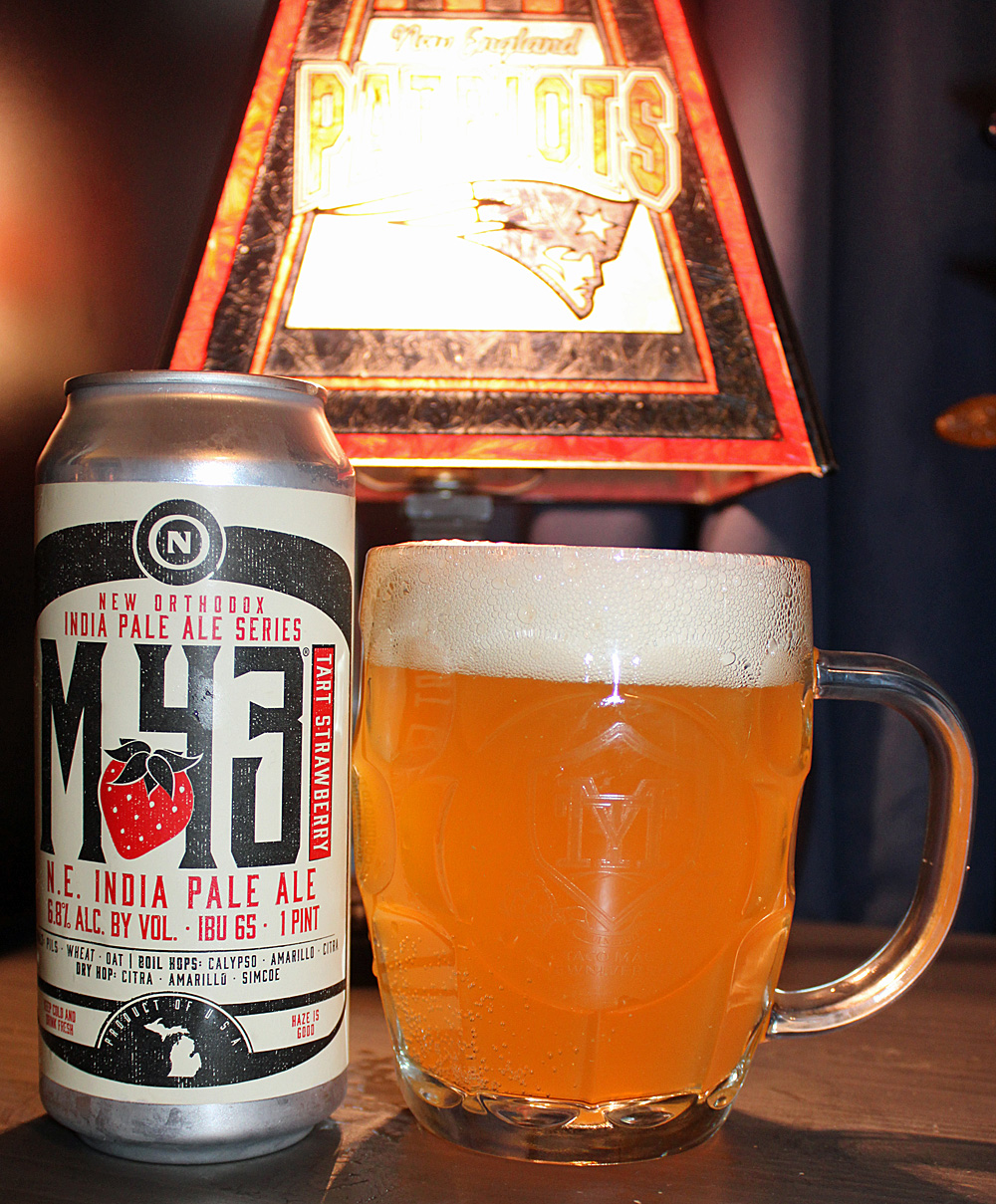 Here’s the first variant I’ve run across on the popular Old Nation M-43 N.E. India Pale Ale: Old Nation M-43 Tart Strawberry NE India Pale Ale. The brewery says on the label this is part of their “New Orthodox India Pale Ale Series”, whatever that is. I am not so sure what is orthodox about an IPA made with strawberries; indeed this seems rather unorthodox to me. Be that as it may, I was eager to try it. Who doesn’t love tart strawberries?