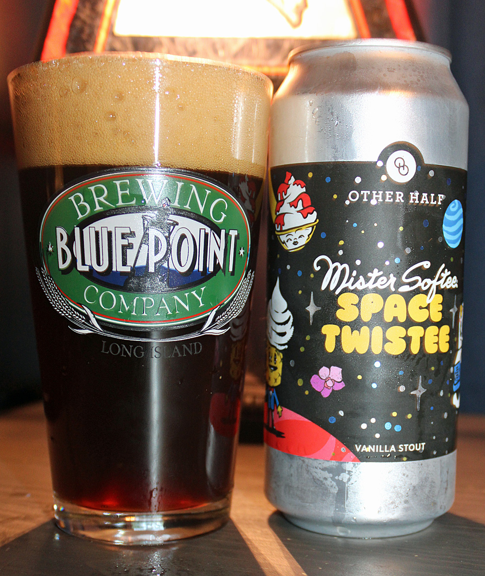 Mister Softee’s website says they were established in 1956, and today their 650 trucks prowl the streets of 18 states. One of those states is Georgia, though I don’t recall ever seeing them here. Be that as it may, Mister Softee is now available in cans, thanks to a collaboration with Other Half Brewing. The pair launched four beers on August 8th of this year, and the first one I have seen is Space Twistee Vanilla Stout.