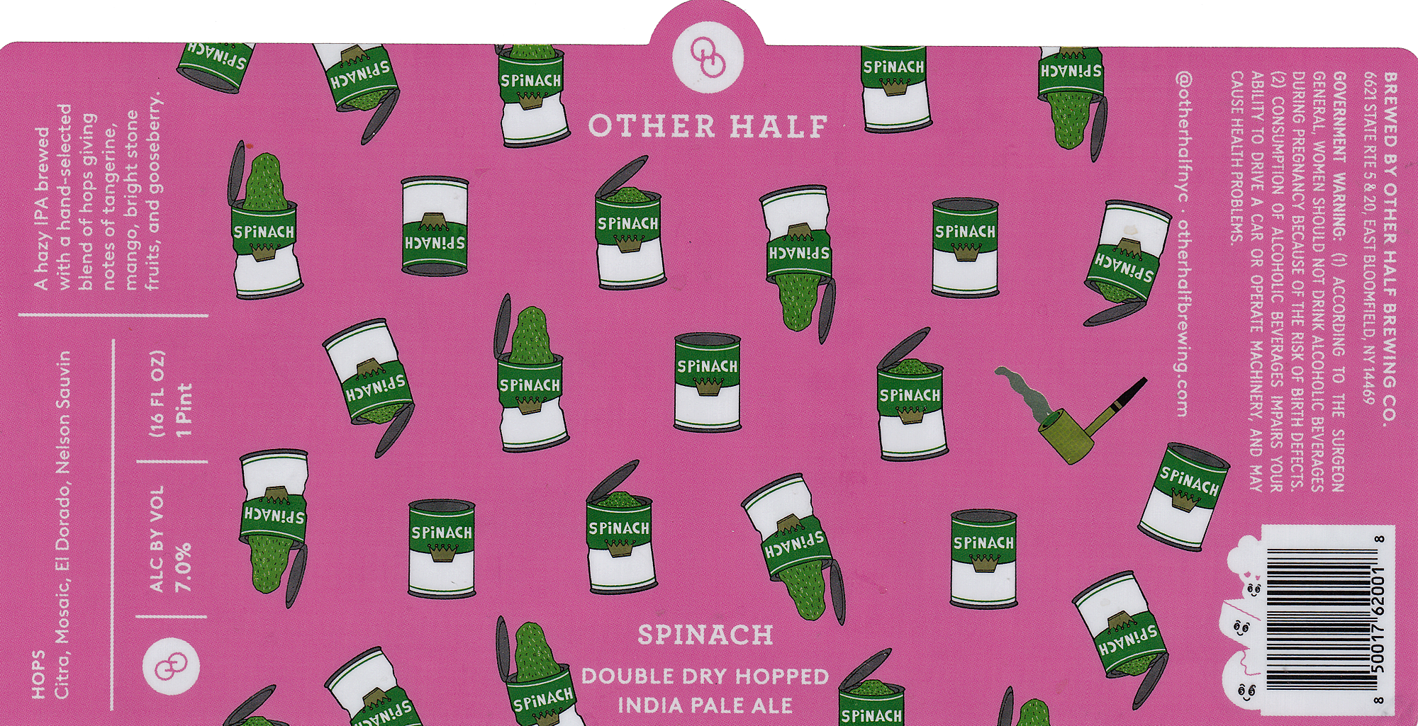 As things usually work out, the beer I was researching, Spinach Double Dry Hopped India Pale Ale, was on the very last page. Here’s what Other Half says about it: