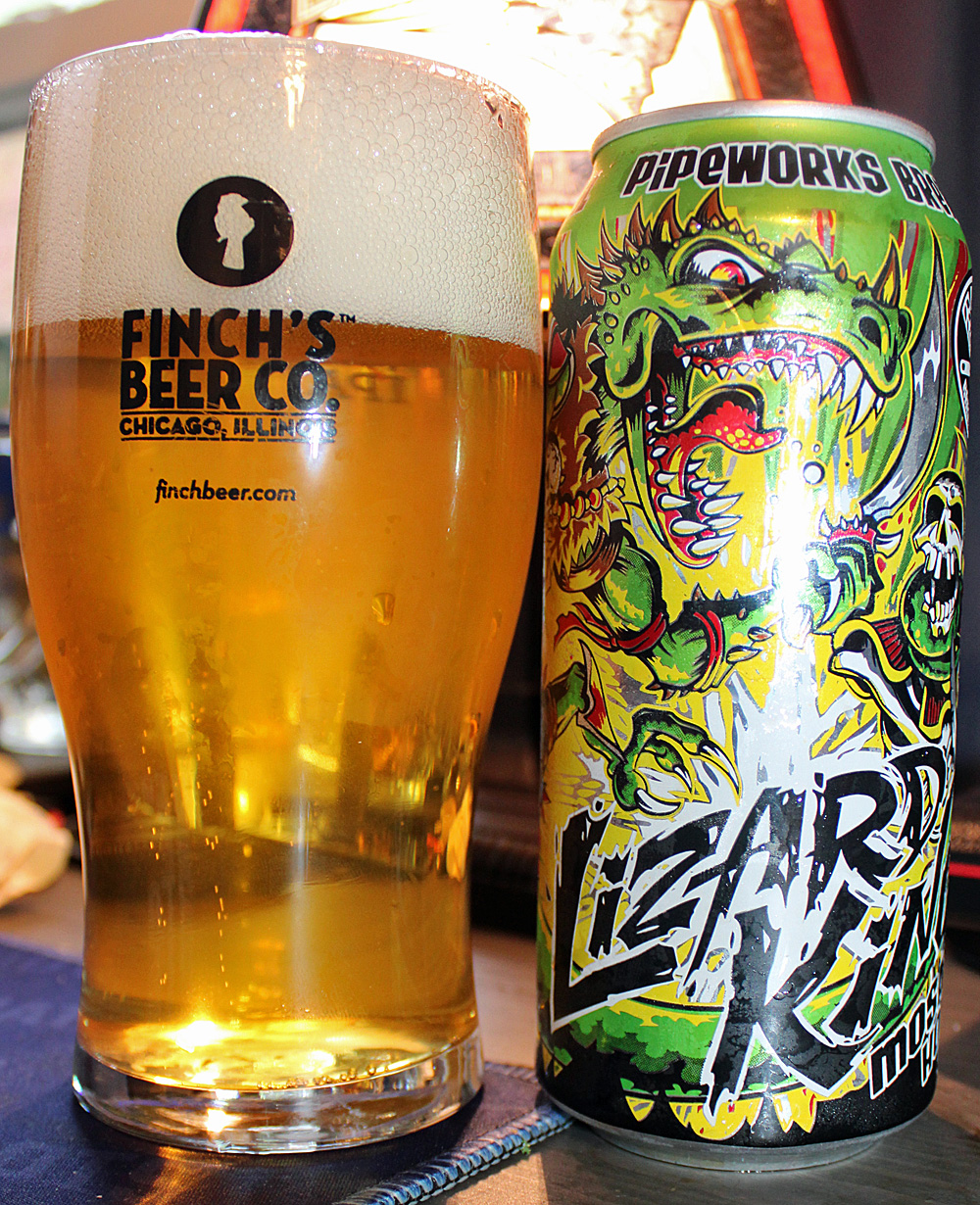Pipeworks Lizard King Mosaic Pale Ale pours to a very pale golden color with a thick fluffy white head and a nose of soft tropical fruit. Taking a sip, the beer is light in body, even lighter than I would expect for a pale ale. It pops with tropical and stone fruit, and I immediately get mango and peach. A hint of pineapple comes through, and perhaps a kiss of citrus. Finishes more bitter than I expected, and I like this. Very easy drinking and very tasty.