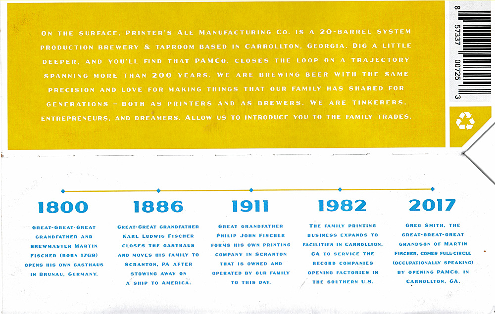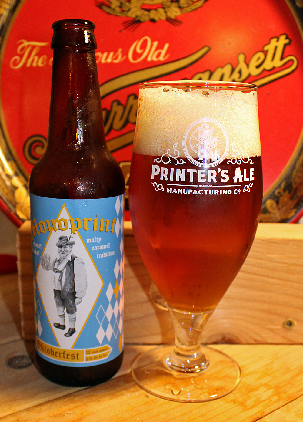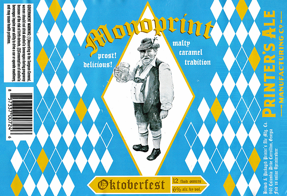 Here’s another beer I picked up at Total Wine recently: Monoprint Oktoberfest from the Printers Ale Manufacturing Company of Carrollton, Georgia. Heretofore, I had only enjoyed Printers’ beers on tap at Taco Mac, but this time I saw them in cans and in the case of the Oktoberfest, bottles. The six-pack carrier immediately caught my attention, festooned as it is with a checkered Bavarian style label and a fine looking fellow in lederhosen enjoying a beer. Printers Ale Manufacturing Company (PAMCO for short) is run by, you guessed it, a family of printers, and most of their beers are named after some aspect of the printing business. There are, also, brewers in the family tree. I had to head on over to trusty Wikipedia to get the definition of monoprint. Monoprinting is a form of printmaking that has lines or images that can only be made once, unlike most printmaking, which allows for multiple originals. PAMCO says about this beer: This Oktoberfest beer is a work of art! Pours a clear copper-orange with a robust white head. Malt predominates the aroma with rich notes of raisin and bread. Clean fermentation characteristics originating from the extended cold lagering phase. Medium body but dry finish allows for a perky bite from the carbonation. Prost! Sounded good enough to get me to buy the beer (the label helped, yes, and the fact I have enjoyed all the beers I have tasted from PAMCO). Still, raisin has no place in an Oktoberfest Marzen beer. Raisin is a fruity ester, exactly the kind of thing the extended cold lagering phase is meant to clean out. Anyway, I didn’t get any raisin here, so glad about that. PAMCO Monoprint Oktoberfest has an alcohol content of 6% by volume with 35 IBUs. I paid $11.99 for my six-pack; a bit higher than the norm these days. Back in January, PAMCO was the featured brewery of the month at Taco Mac, and I enjoyed their beers there on tap. One of the Thursday night giveaways was the glass pictured here, another one was a calendar printed by PAMCO. The calendar features that beautiful photo of a pretzel and a beer for September. It also included a lot of great coupons for free beer at the brewery, but sadly Covid hit shortly thereafter and prevented me from redeeming any of them. Monoprint Oktoberfest pours to a beautiful copper color with a thick head of fluffy white foam and a delightful toasty nutty malt nose. Taking a sip, the beer is firm enough in body, rich and malty as appropriate for the style. It pops with deep seated nutty malty Munich malt goodness and I am quite impressed. The finish is balanced to gently bitter with grassy hops. Very tasty! I am glad I bought a six of this, and not a single. It ranks right up there with the best of Georgia brewed Marzen Oktoberfest beers, though for me it’s behind Tucker Brewing Company’s delightful Tucktoberfest. Still, a beer worth seeking out, and one that goes onto my rebuy list for sure. And remember, try a new beer today, and drink outside the box. *Pricing data accurate at time of review or latest update. For reference only, based on actual price paid by reviewer. (B)=Bottled (D)=Draft