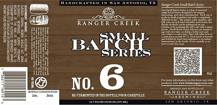 Is Ranger Creek Small Batch Series No. 6 my first ever beer brewed in San Antonio? No, it’s not, that honor goes to a blonde ale from Branchline Brewing Company, though not long before I enjoyed this Ranger Creek beer. Still, that’s not much beer from this city, and neither of them are distributed in this area. I got both bottles in beer trades with friends in Texas.