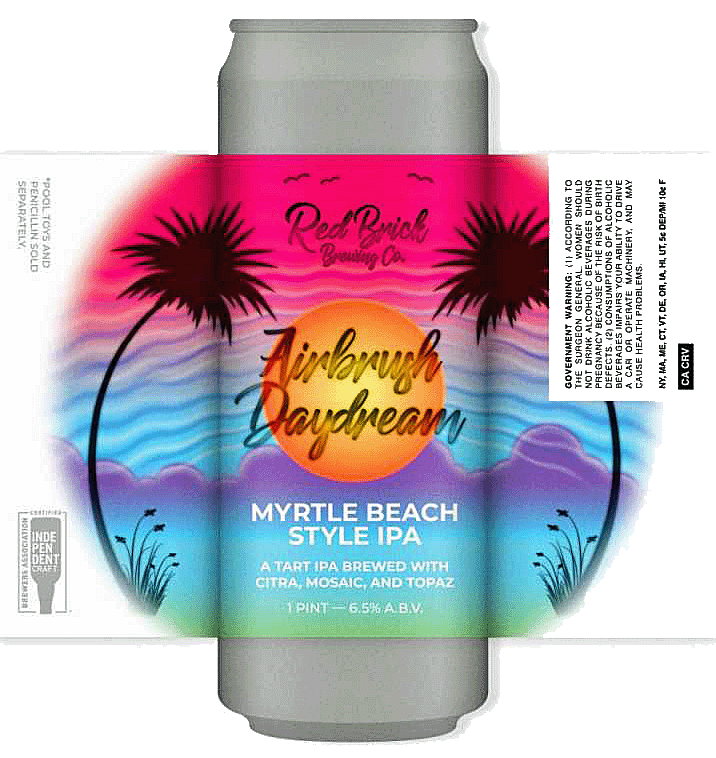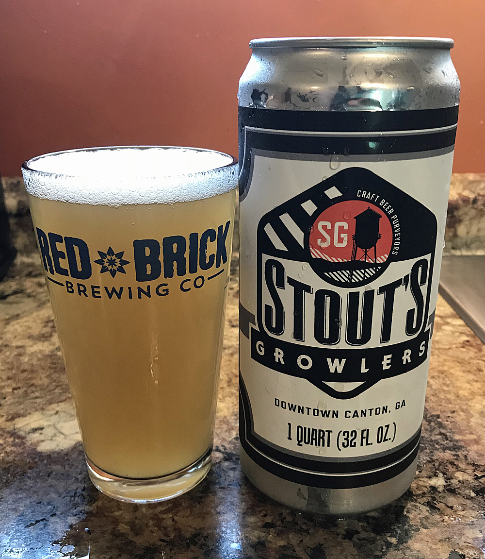 Here’s a beer I don’t know a lot about: Red Brick Airbrush Daydream, a brew that Atlanta-based Red Brick calls a “Myrtle Beach Style IPA”. I first saw it on the draft list of my local Taco Mac, but the keg had kicked before I got there. I then saw it available at Stout’s Growlers and headed there for a crowler.